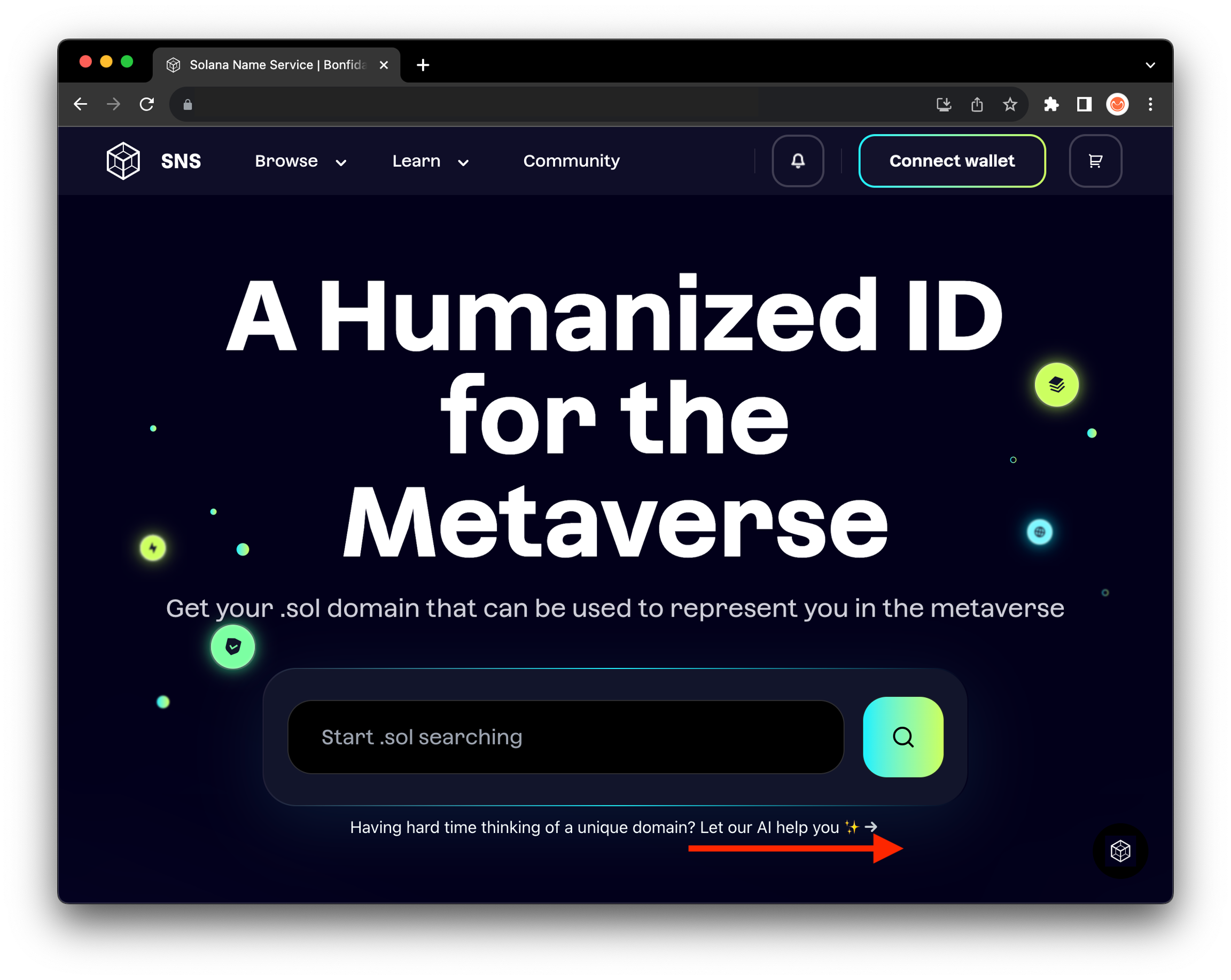 .sol 도메인 이름을 검색하려면 arrow-up-rightv1.sns.idarrow-up-right를 방문하세요.