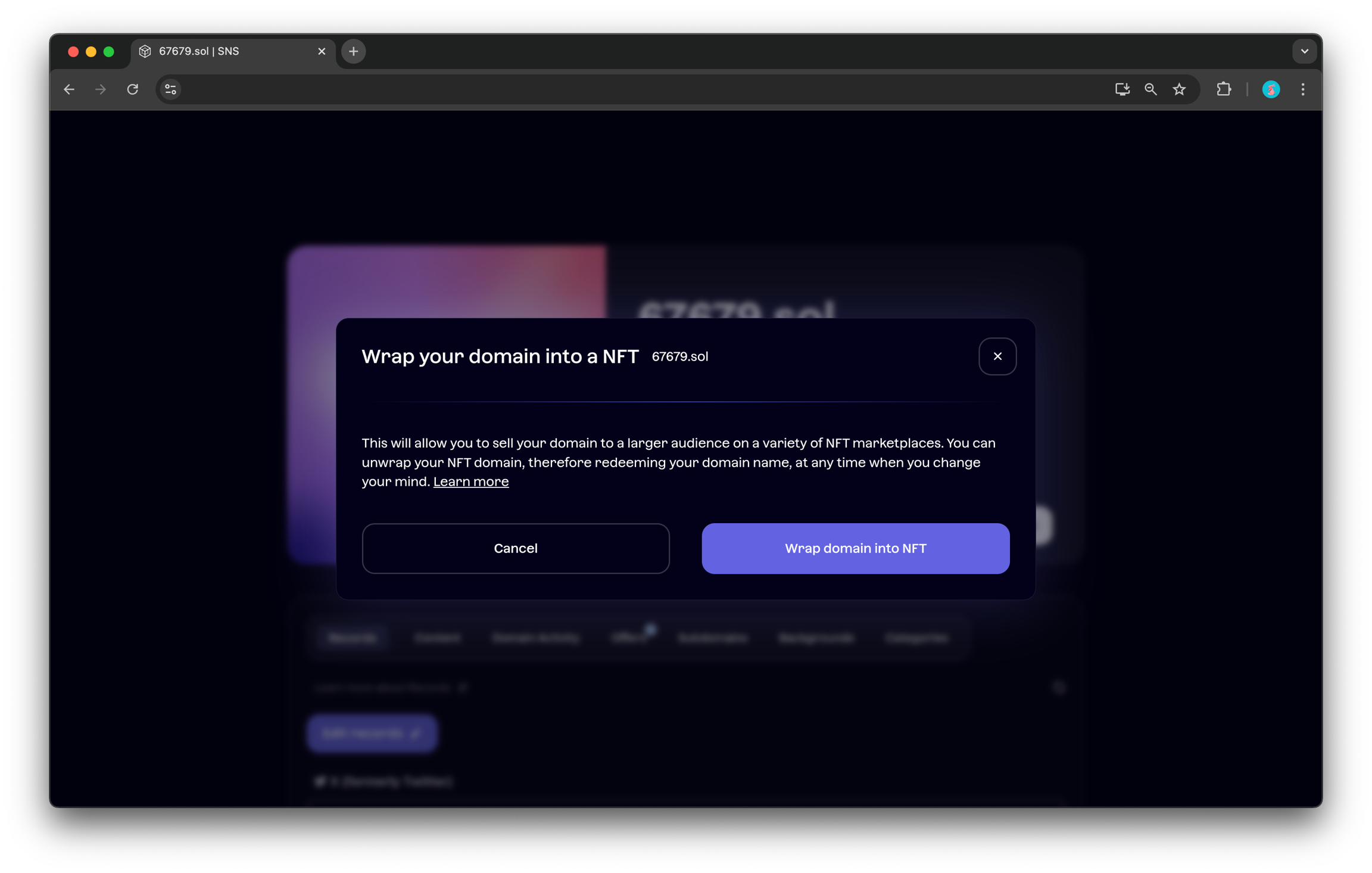 NFT 도메인을 구매한 경우, 모든 기능을 사용하려면 반드시 언래핑해야 합니다.