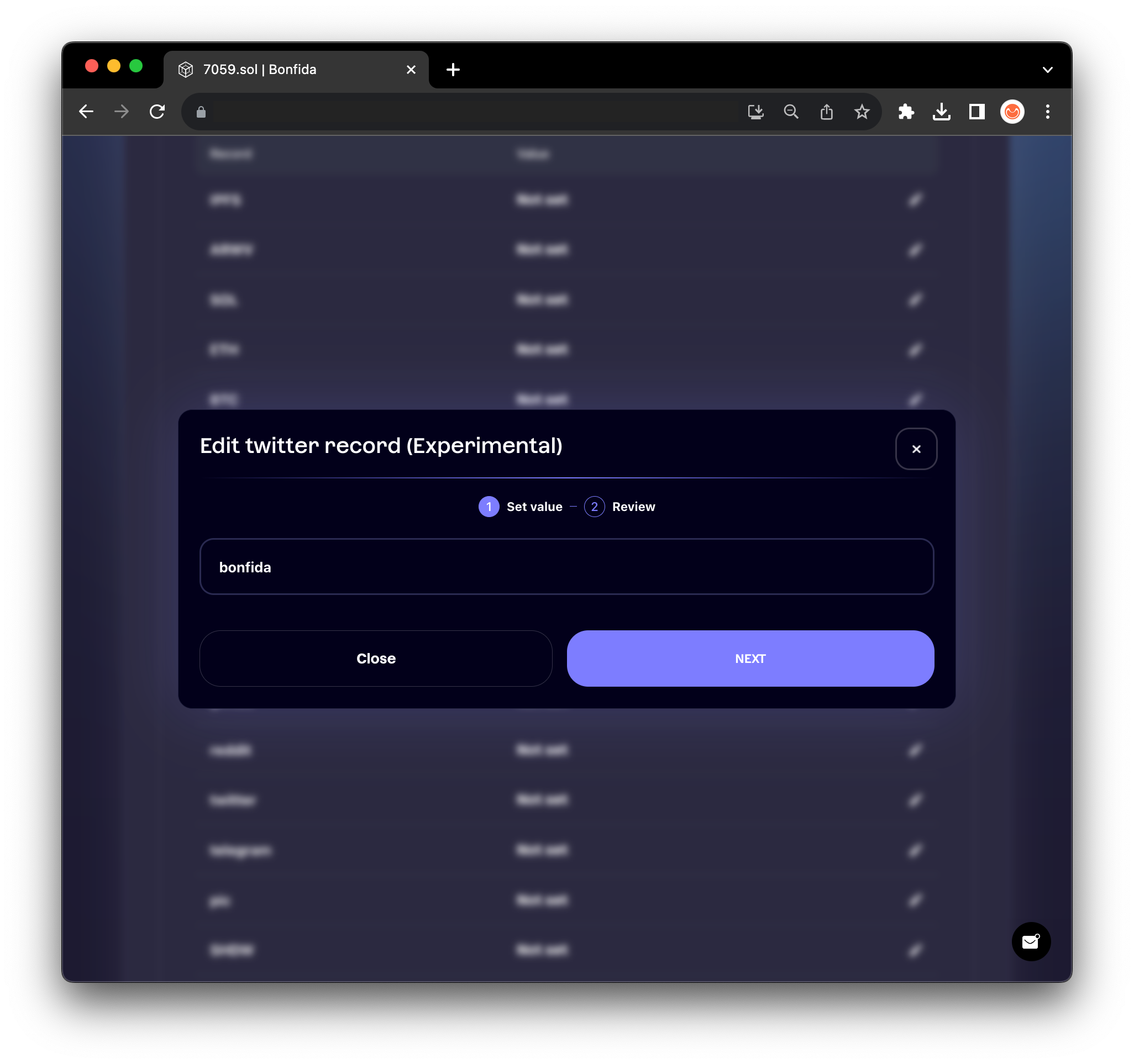 레코드와 아이덴티티를 관리하는 가장 좋은 방법은 SNS Manager 제품을 사용하는 것입니다. 현재 Backpack과 Solana Mobile에서 이용할 수 있습니다. 또는 v1.sns.id에서 보유한 도메인의 레코드를 관리할 수도 있습니다.
