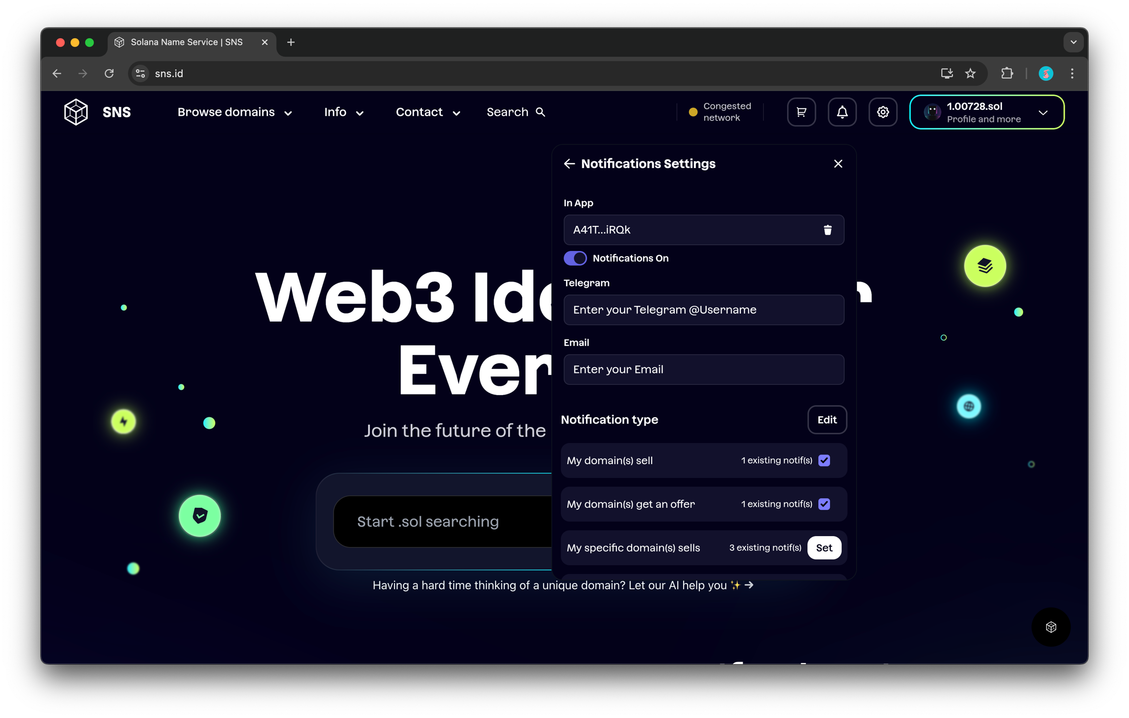 알림 시스템은 유연하게 설계되어 있어, 도메인 목록의 변경사항이나 특정 .sol 도메인 관련 이벤트를 놓치지 않도록 보장합니다.