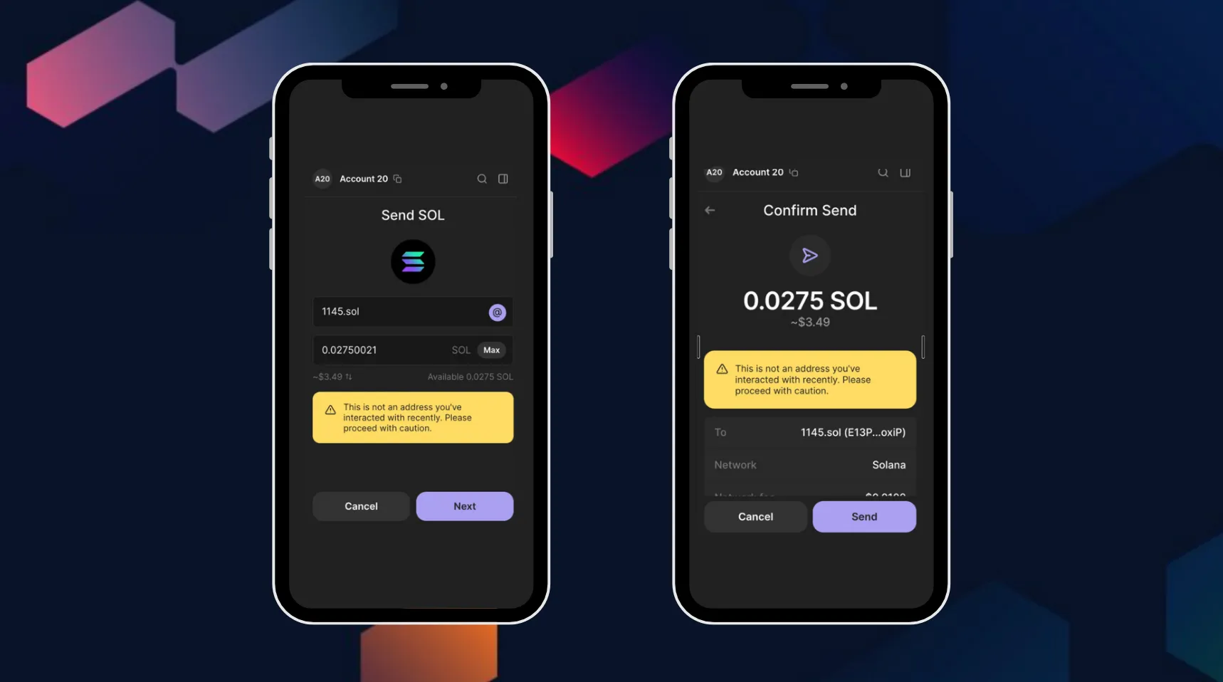 .sol 도메인을 사용하여 주소를 조회하거나 거래 내역을 자세히 확인해보세요.