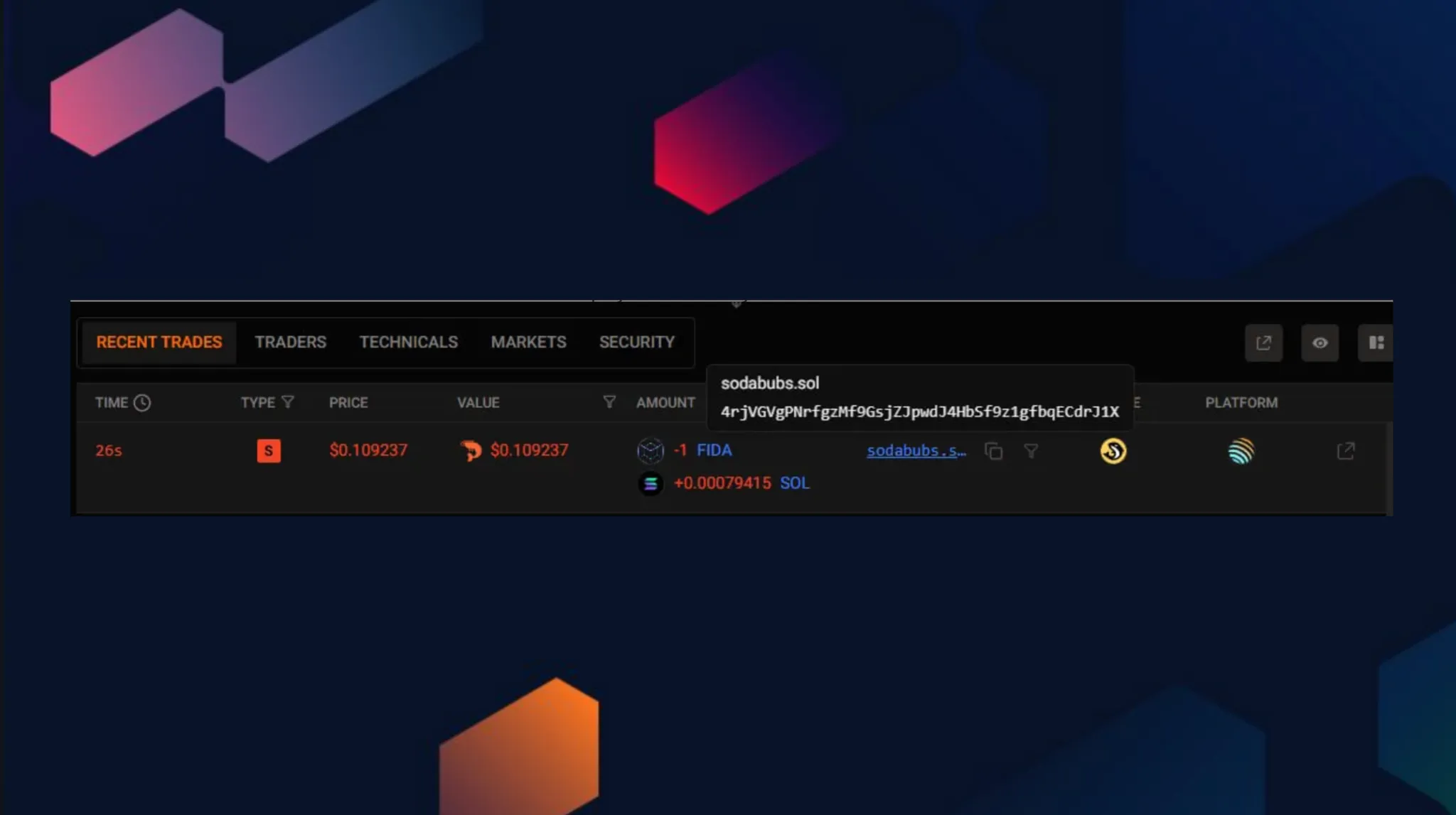 Birdeye는 거래 중 지갑 주소 대신 도메인을 표시할 수 있게 해줍니다.