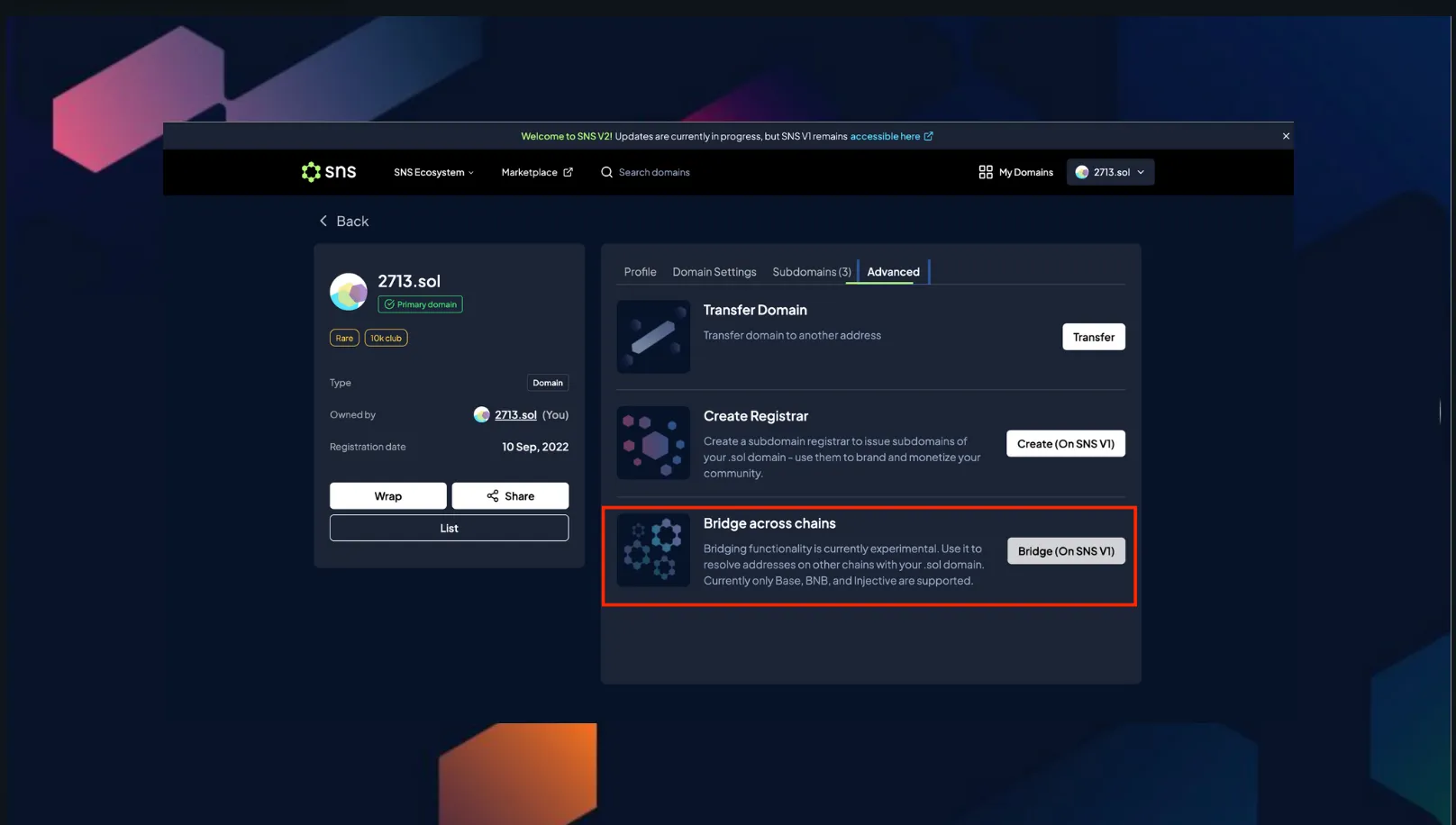 Wormhole을 사용하여 Solana 외에도 Injective, BNB, Base 체인에서 동일한 .sol 도메인을 사용할 수 있습니다.